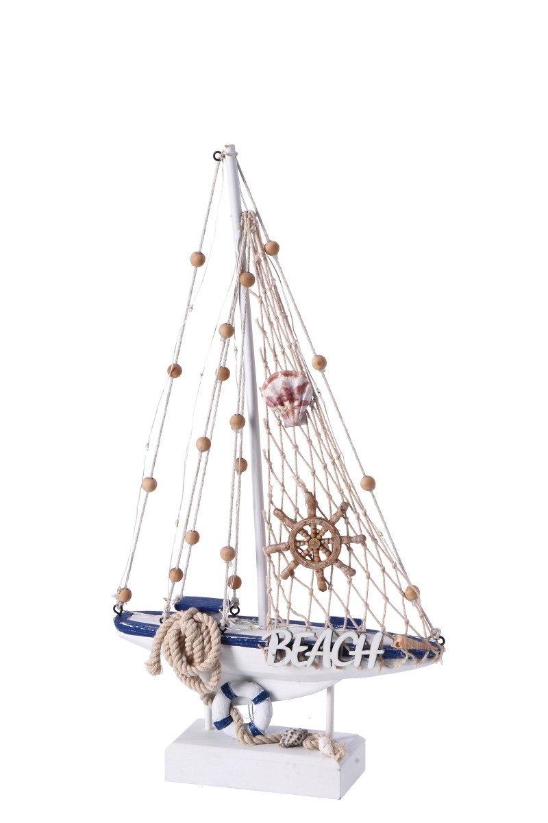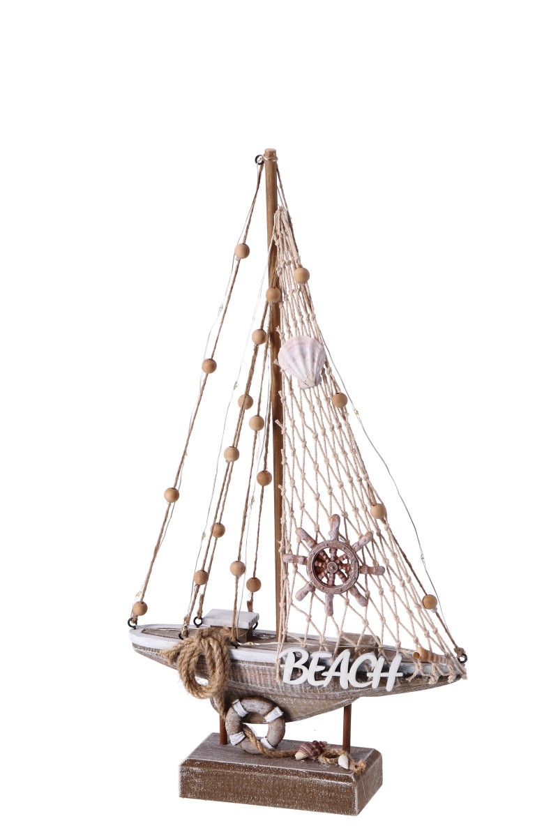 Wooden Sailboat Beach Decoration with 15 LED lights (H42cm)