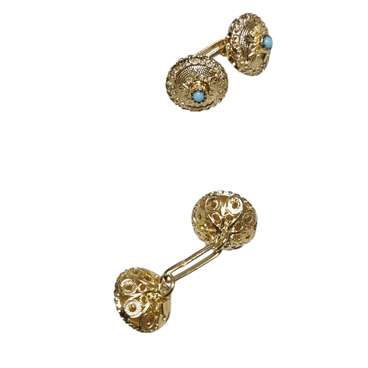 Coppia 4 Bottoni Costume Sardo Argento Dorato con Turchese 1,7 cm