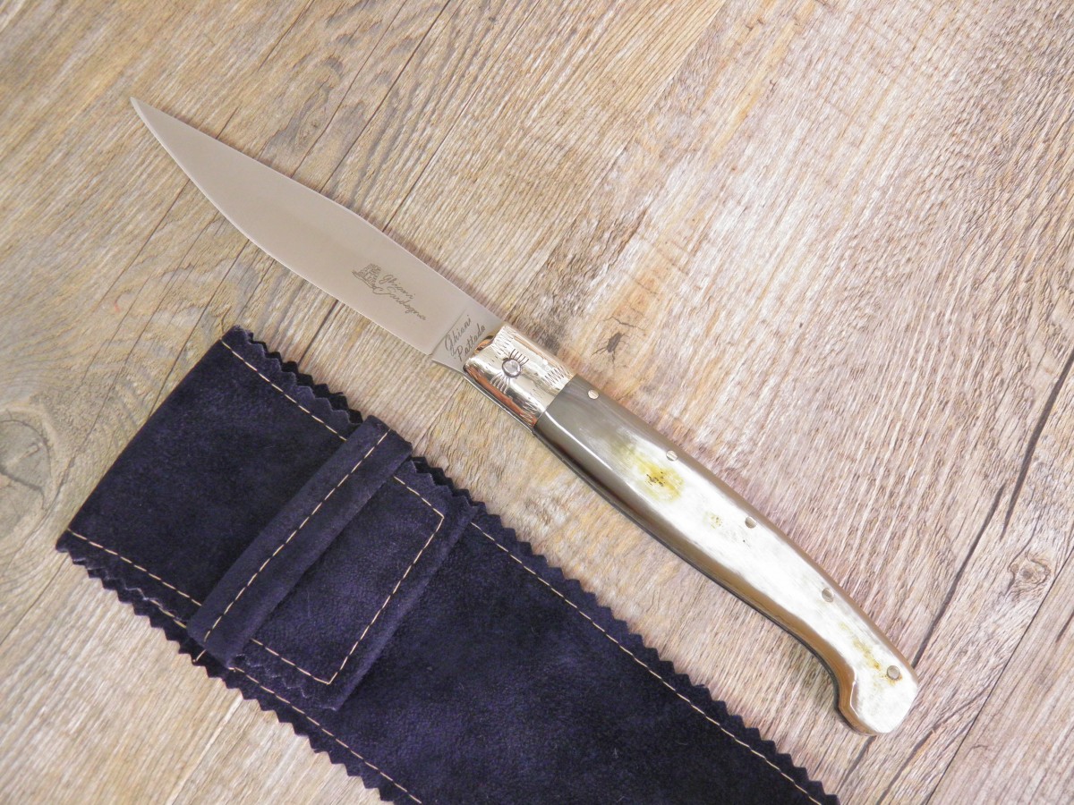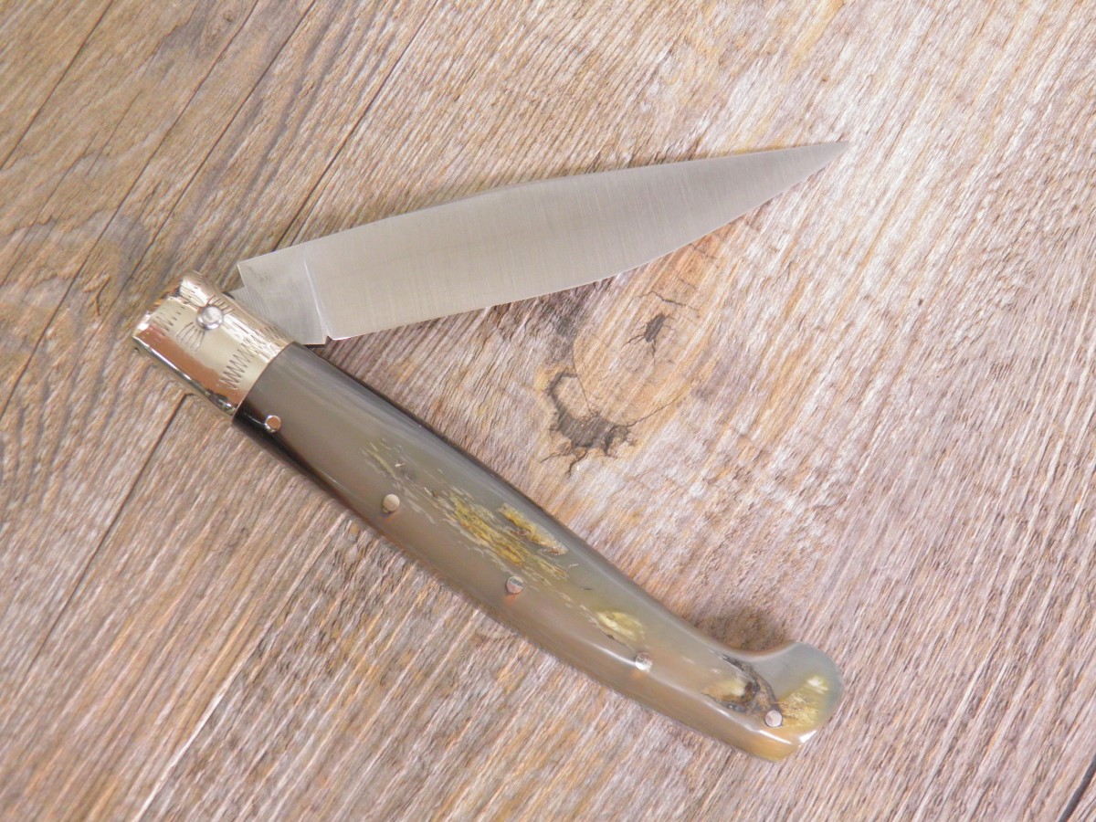Knife made from various materials, for the blade and handle, ox horn or mouflon horn, hunting blade or damascus.