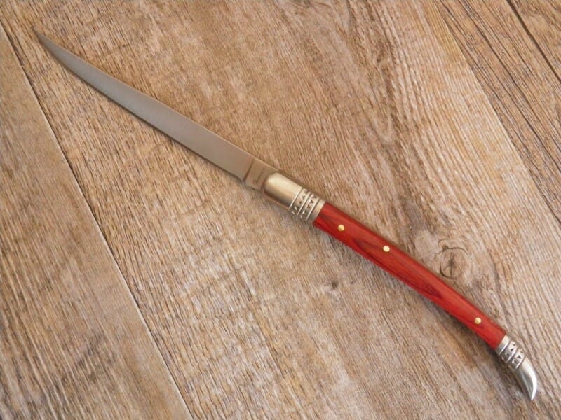 Cuchillo de mango de madera con hoja de acero e inscripción "Cerdeña" en el lateral de la hoja