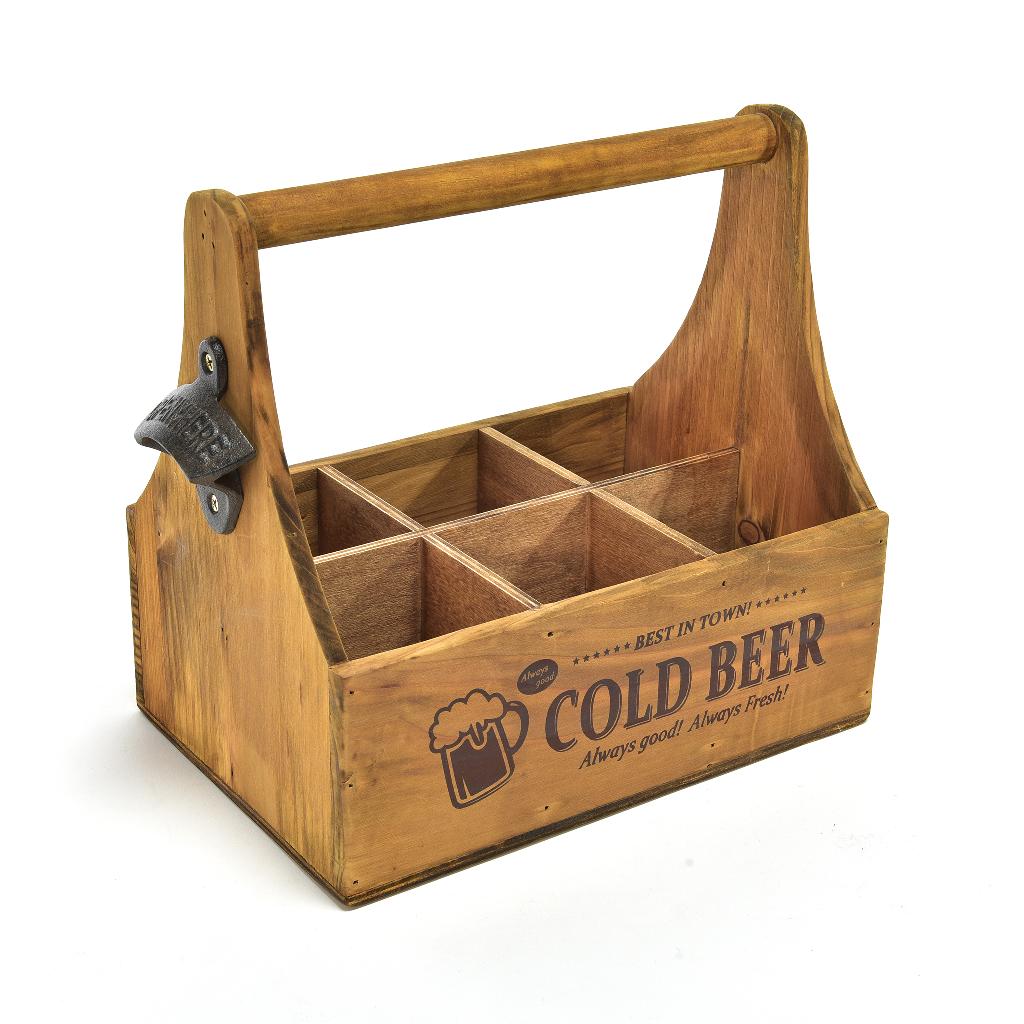 Cestello in legno portabottiglie o bicchieri di birra con apribotiglie integrato