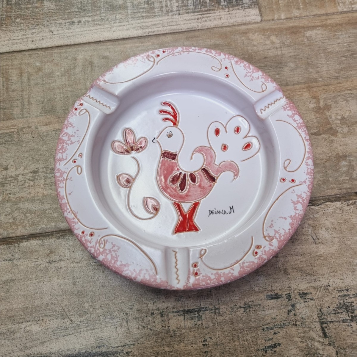 Posacenere tondo grande Ceramica Sarda Pavoncella (16 cm)