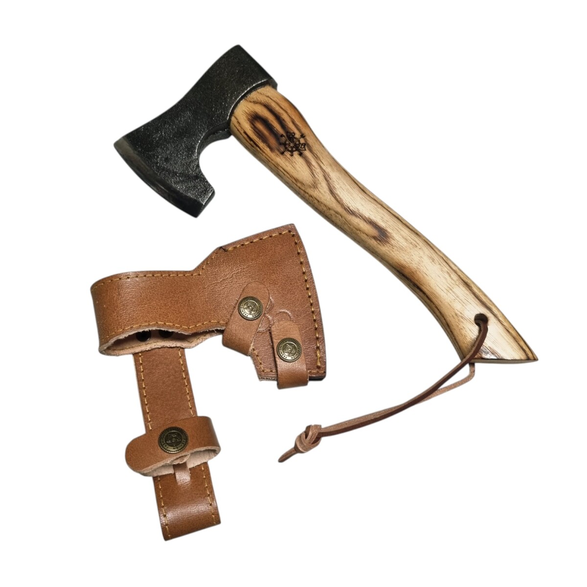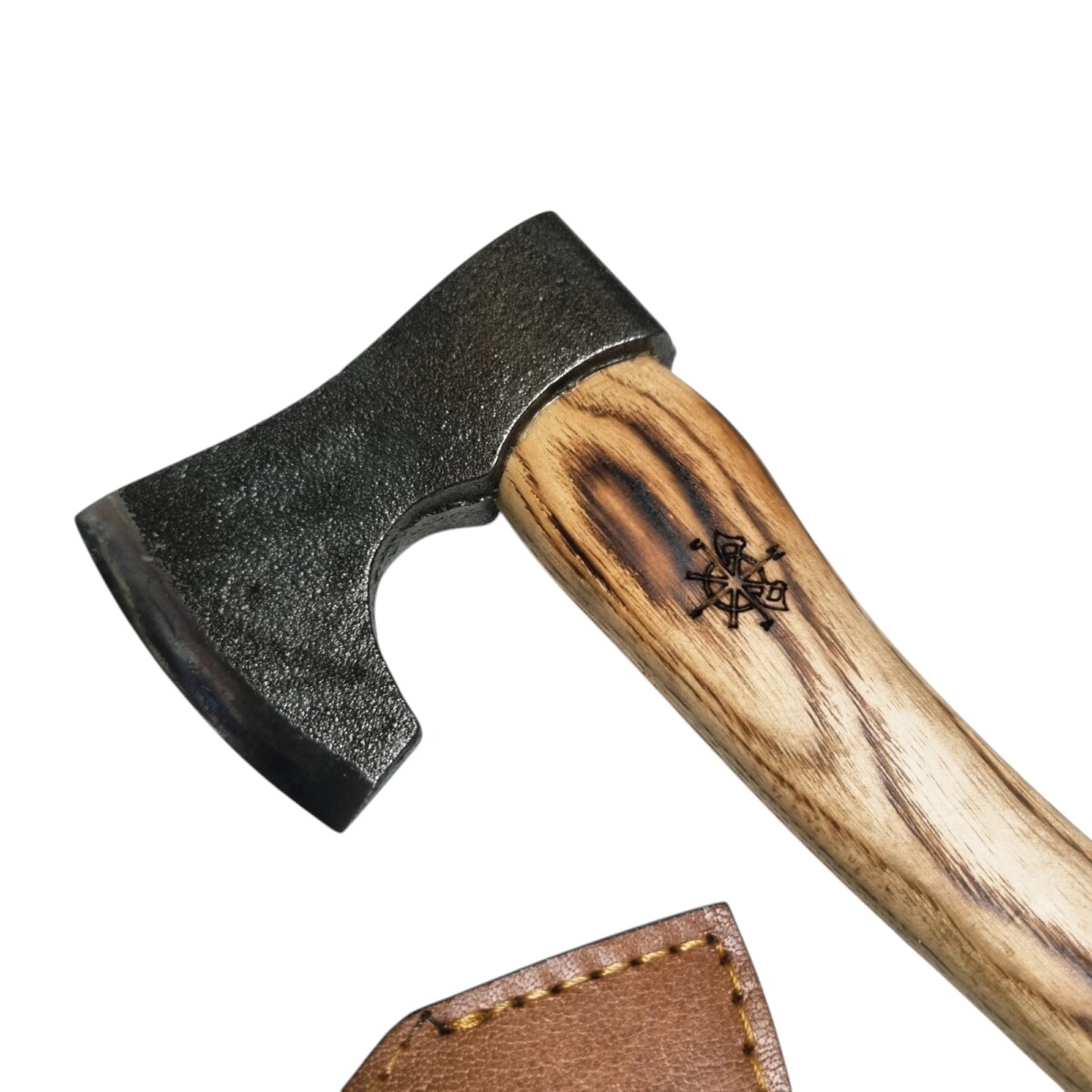 Accetta artigianale media lavorata a mano con manico castagno e fodero in cuoio 28 cm