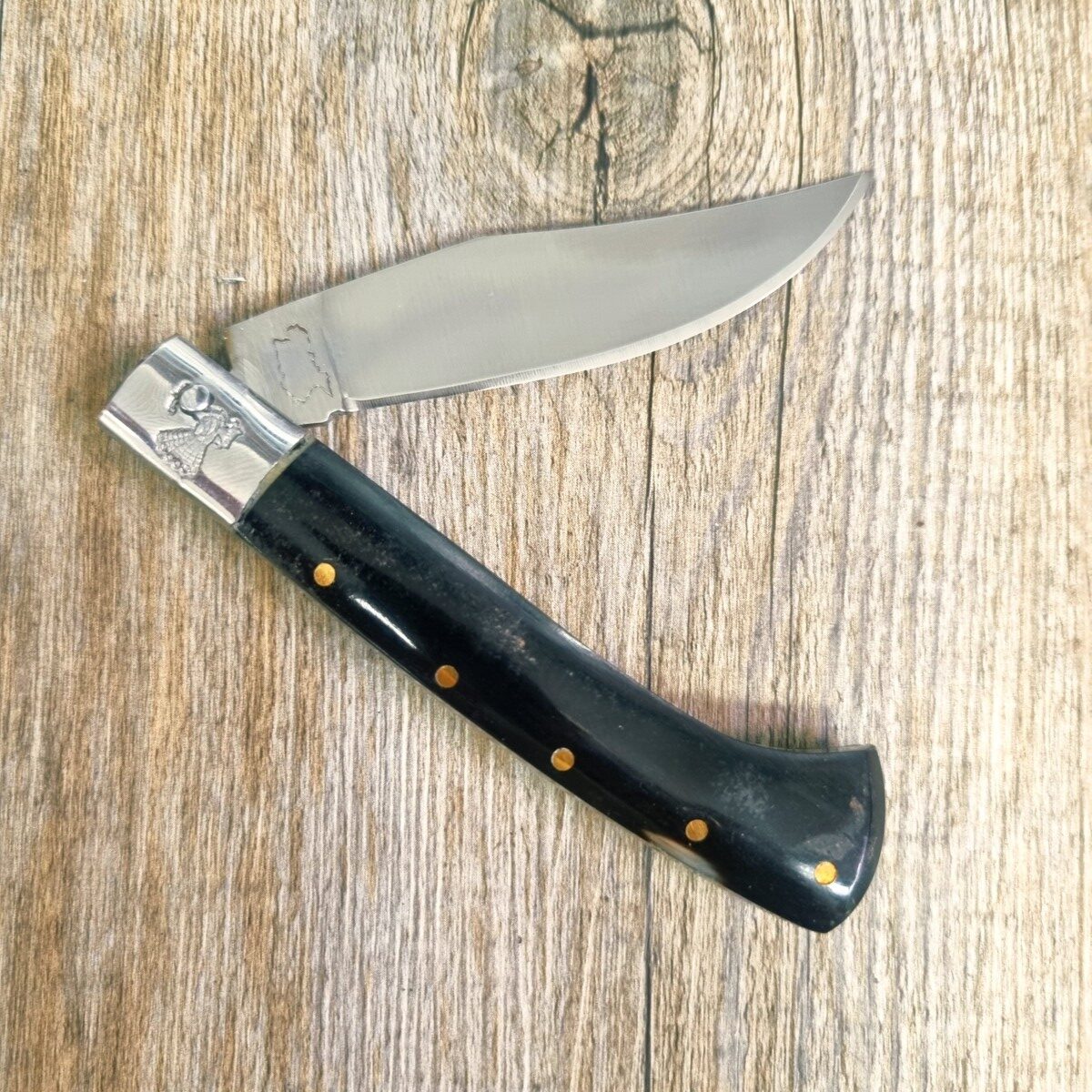• Manico in Corno di muflone con anima in acciaio