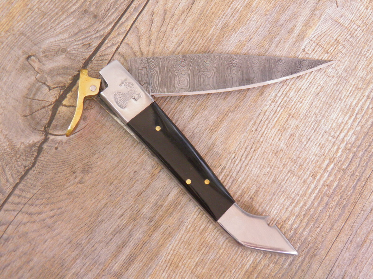 Coltello creato con vari materiali , per la lama e per il manico , corno di bue o di muflone , lama in cacciao al carbonio o damasco.