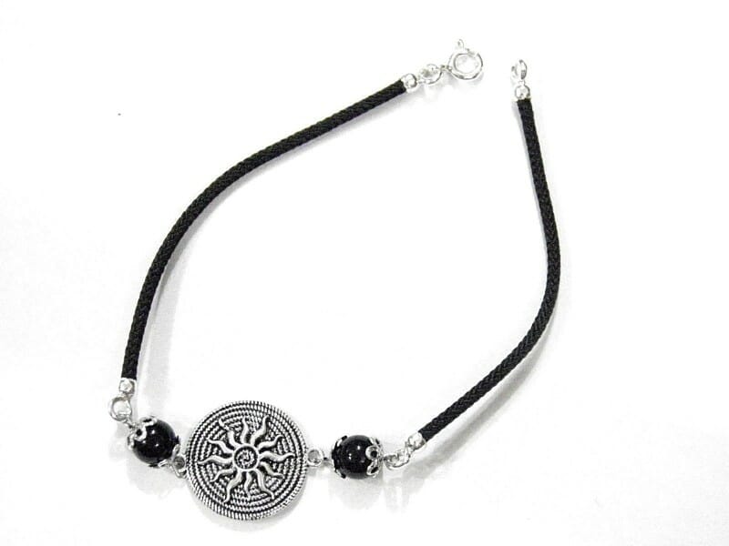 Bracciale Ciondolo portafortuna con sfera in onice “Su Coccu” e perla decorativa. Splendido gioiello di artigianato sardo con lavorazione simile alla filigrana.